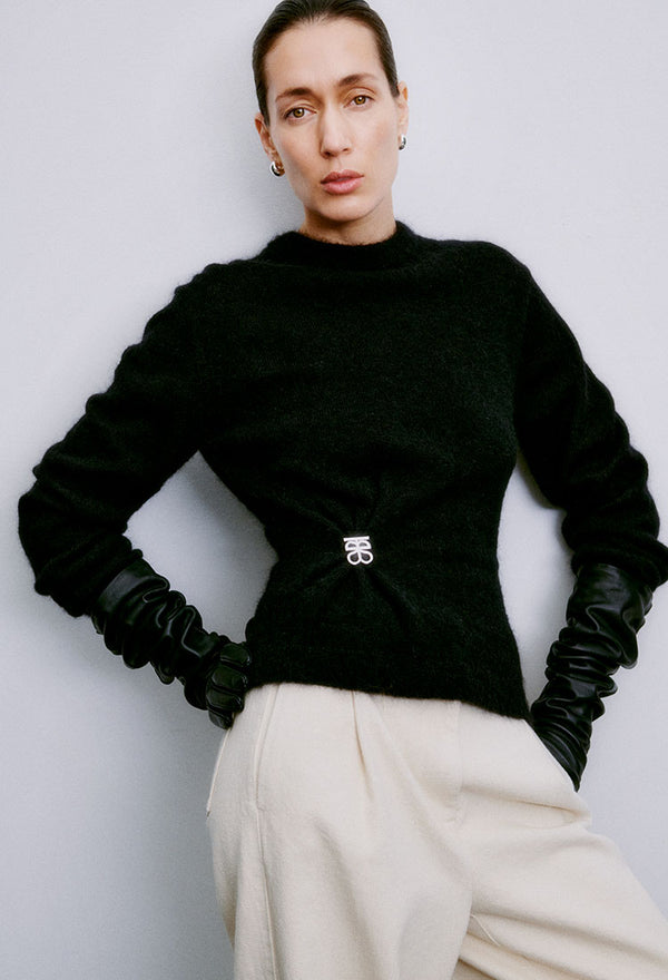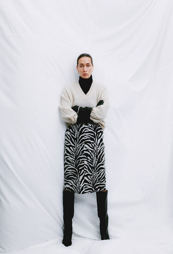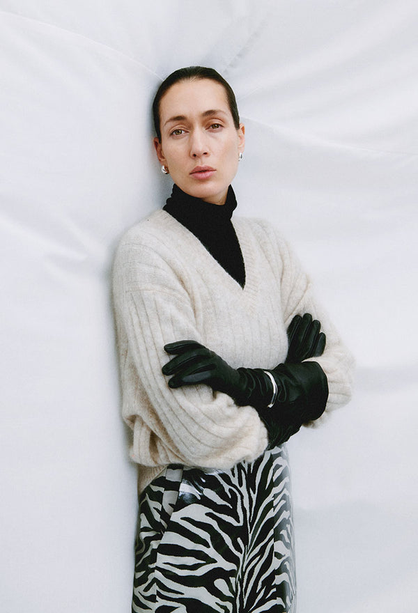 Brooky Knit V-Neck / Ceba Leather Skirt