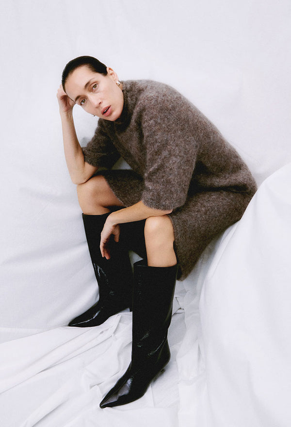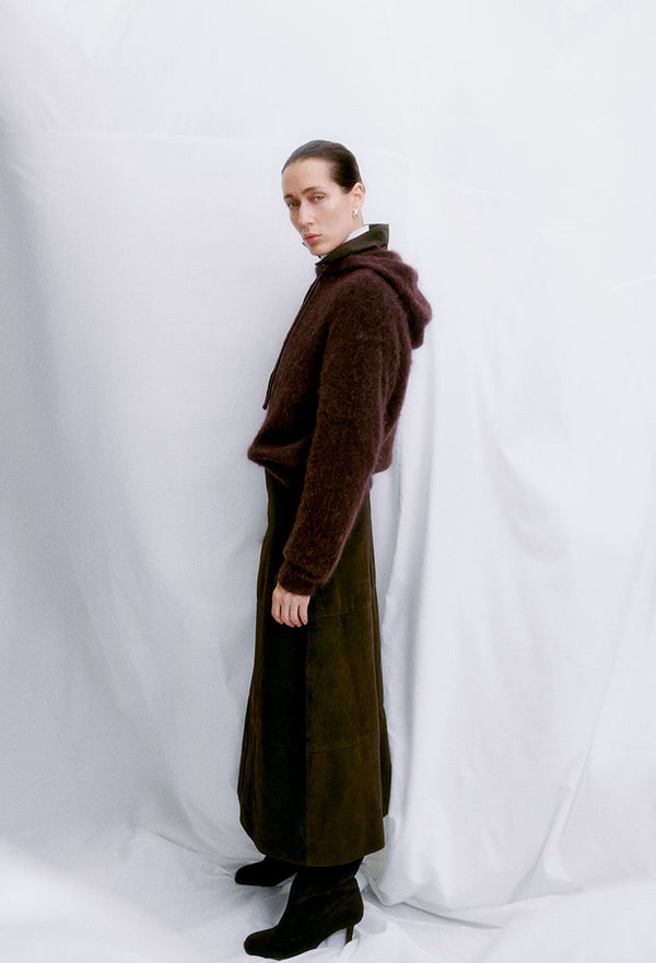 Anneleen Knit Hoodie / Noormie Suede Skirt
